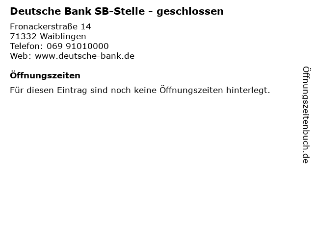 | Deutsche Bank SB-Stelle - geschlossen anrufen | |