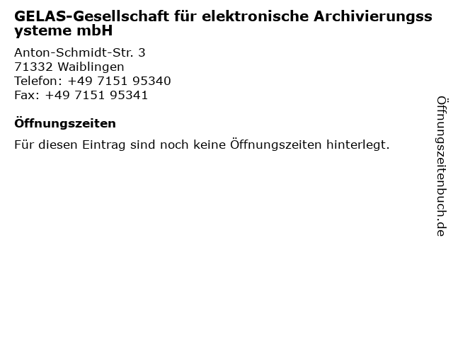| GELAS-Gesellschaft für elektronische Archivierungssysteme mbH anrufen | |