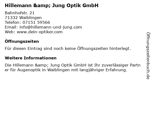 Branchen & Suchbegriffe zu Hillemann & Jung Optik GmbH:hillemann, jung, optik |