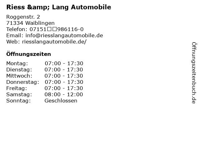 | Öffnungszeiten Riess & Lang Automobile in Waiblingen anzeigen | |