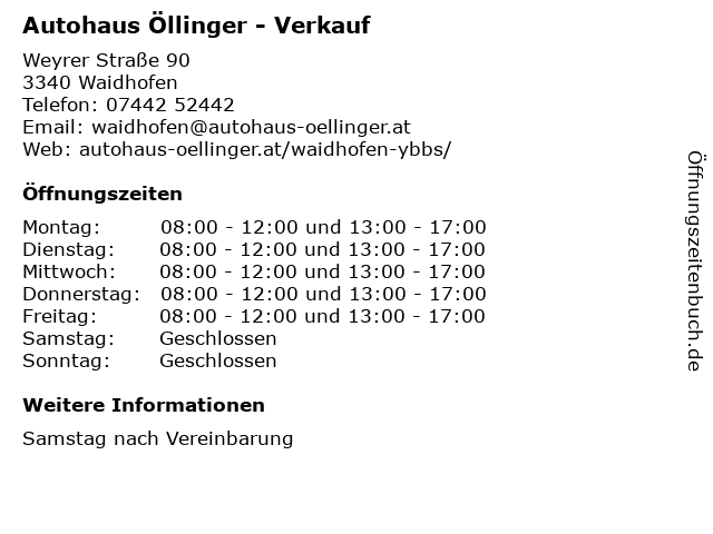 | Öffnungszeiten Autohaus Öllinger - Verkauf in Waidhofen anzeigen | |