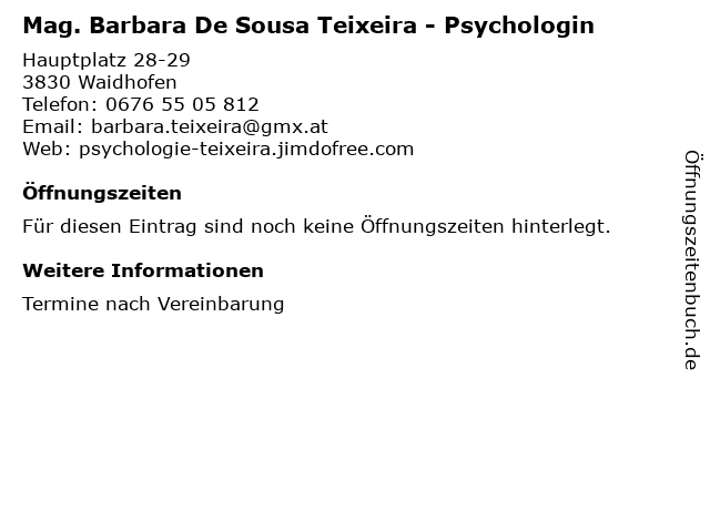 | Mag. Barbara De Sousa Teixeira - Psychologin anrufen | |