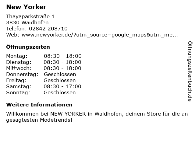 | Öffnungszeiten New Yorker in Waidhofen anzeigen | |