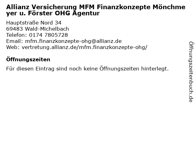 | Allianz Versicherung MFM Finanzkonzepte Mönchmeyer u. Förster OHG Agentur anrufen | |