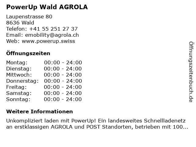 | Öffnungszeiten PowerUp Wald AGROLA in Wald anzeigen | |