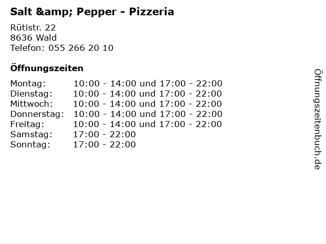 | Öffnungszeiten Salt & Pepper - Pizzeria in Wald anzeigen | |