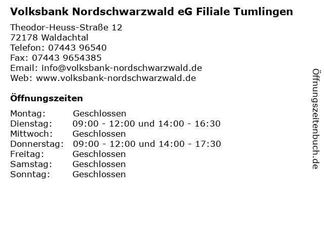 Branchen & Suchbegriffe zu Volksbank Nordschwarzwald eG Filiale Tumlingen:bank, bargeld, eg, nordschwarzwald, raiffeisenbank, tumlingen, volksbank, waldachtal, zwnl |