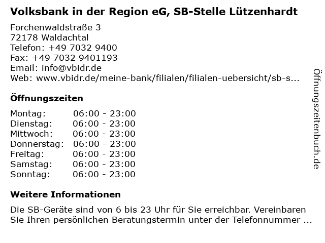 Branchen & Suchbegriffe zu Volksbank in der Region eG, SB-Stelle Lützenhardt:eg, geldautomat, lützenhardt, region, sb, stelle, volksbank |