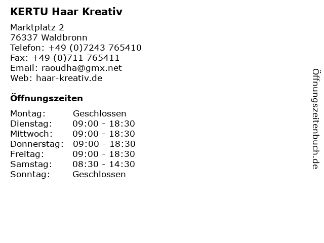 | Öffnungszeiten KERTU Haar Kreativ in Waldbronn anzeigen | |