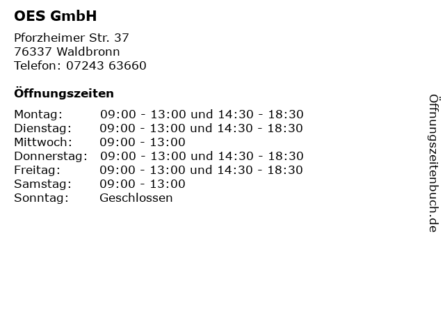 | Öffnungszeiten OES GmbH in Waldbronn anzeigen | |