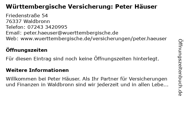 | Württembergische Versicherung: Peter Häuser anrufen | |