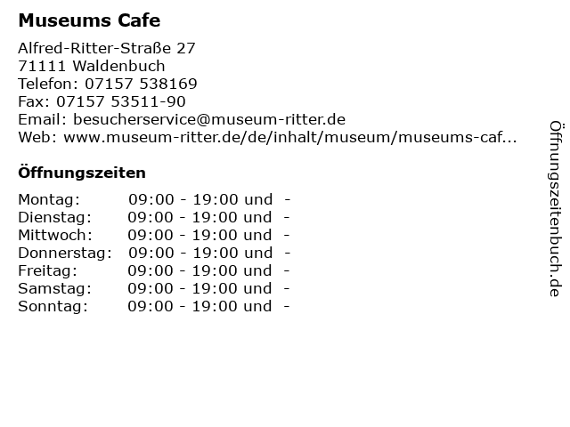Museums Cafe in Waldenbuch: Telefonnummer, Öffnungszeiten und Adresse