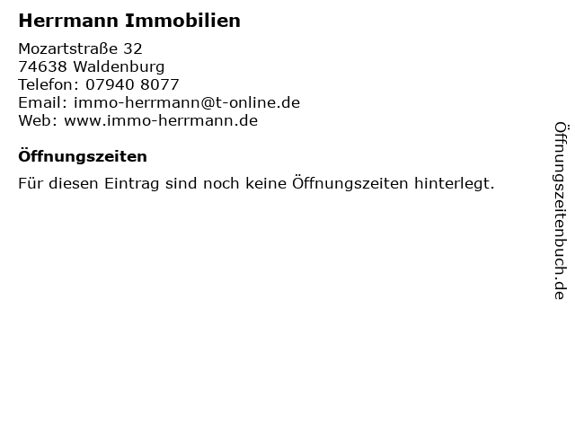 | Öffnungszeiten Herrmann Immobilien in Waldenburg anzeigen | |