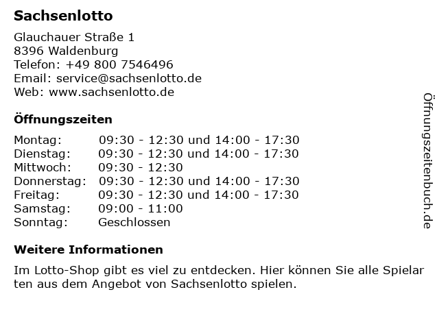 | Adresse Sachsenlotto in Waldenburg anzeigen |
