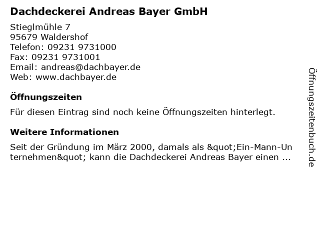 | Dachdeckerei Andreas Bayer GmbH anrufen | |