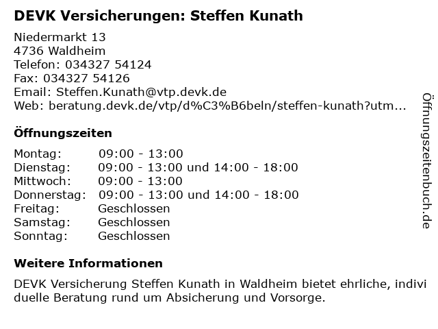 4 DEVK Versicherung: Toni Hillig (Berater*in ausgeschieden) (Entfernung: 8,29 km) Johannisstraße 1/3, 04720 Döbeln 5 DEVK Versicherung: Jannik Heinicke (Berater*in ausgeschieden) (Entfernung: 8,30 km) Johannisstraße 1/3, 04720 Döbeln 6 |