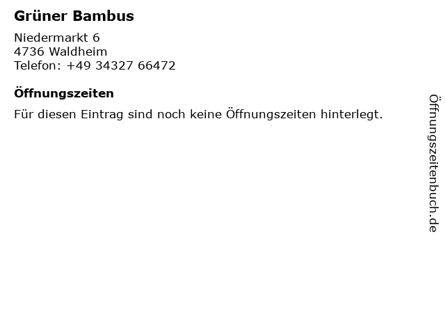 | Öffnungszeiten Grüner Bambus in Waldheim anzeigen | |