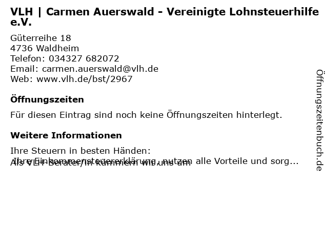 Branchen & Suchbegriffe zu VLH | Carmen Auerswald - Vereinigte Lohnsteuerhilfe e.V.:auerswald, carmen, e.v., lohnsteuerhilfe, vereinigte, vlh |