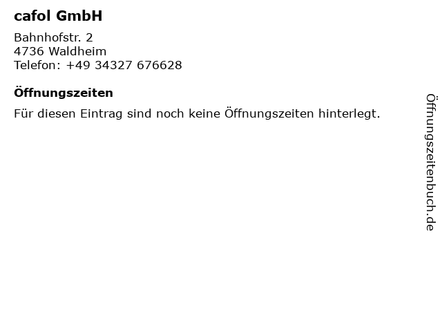 | Öffnungszeiten cafol GmbH in Waldheim anzeigen | |