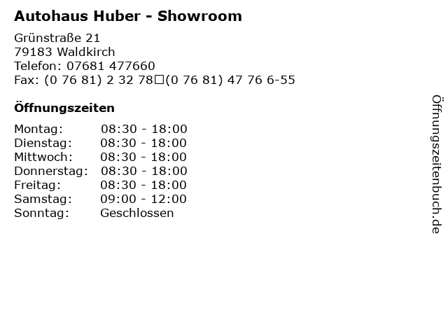 | Öffnungszeiten Autohaus Huber - Showroom in Waldkirch anzeigen | |