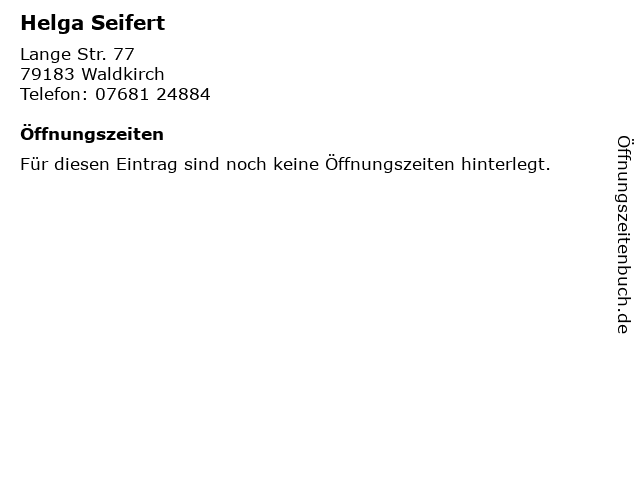 | Öffnungszeiten Helga Seifert in Waldkirch anzeigen | |
