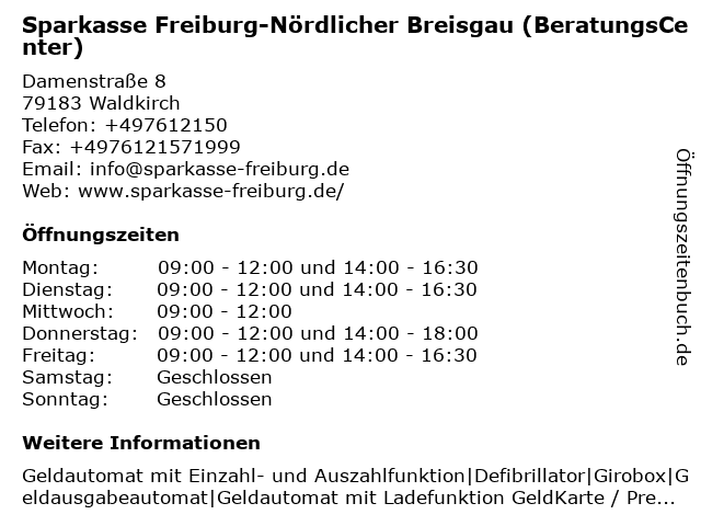 Branchen & Suchbegriffe zu Sparkasse Freiburg-Nördlicher Breisgau (Filiale):breisgau, nördlicher, sparkasse |