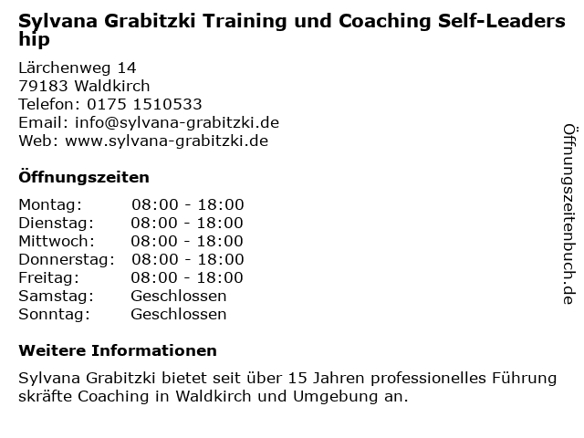 Branchen & Suchbegriffe zu Sylvana Grabitzki Training und Coaching Self-Leadership:coaching, grabitzki, leadership, self, sylvana, training |