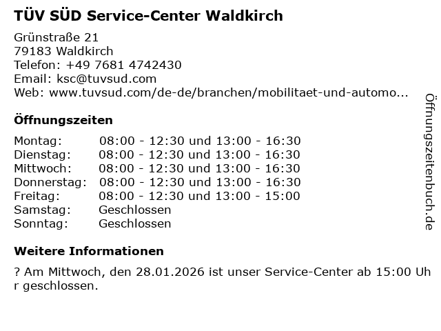 Branchen & Suchbegriffe zu TÜV SÜD Service-Center Waldkirch:abgasuntersuchung, center, hauptuntersuchung, kfz, oldtimergutachten, service, süd, tüv |