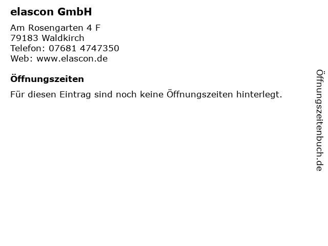 | Öffnungszeiten elascon GmbH in Waldkirch anzeigen | |