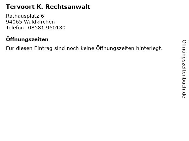 | Öffnungszeiten Tervoort K. Rechtsanwalt in Waldkirchen anzeigen | |