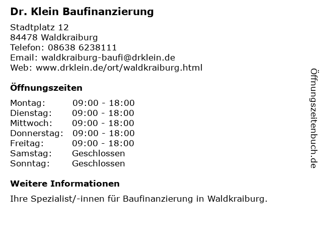 Öffnungszeiten Dr. Klein Baufinanzierung in Waldkraiburg anzeigen