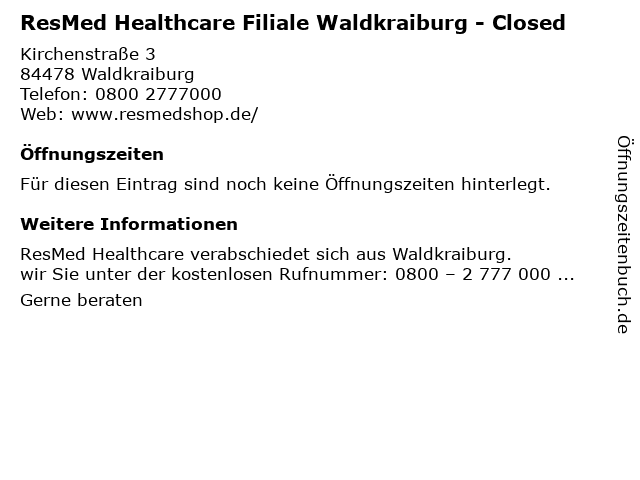 | ResMed Healthcare Filiale Waldkraiburg - Closed anrufen | |