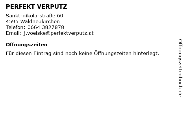 | Öffnungszeiten PERFEKT VERPUTZ in Waldneukirchen anzeigen | |