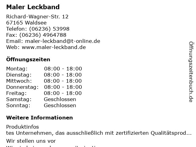 | Öffnungszeiten Maler Leckband in Waldsee anzeigen | |