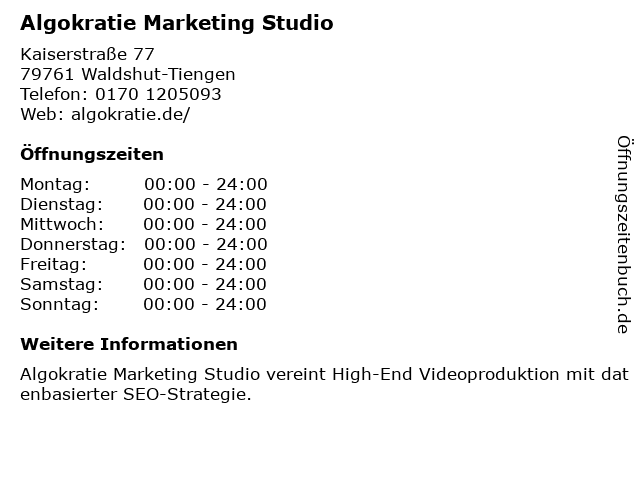Branchen & Suchbegriffe zu Algokratie Marketing Studio:agentur für internetmarketing, algokratie, grafikdesigner, marketing, studio, videograph, videoproduktion, web-consultant, webdesigner, webentwickler |