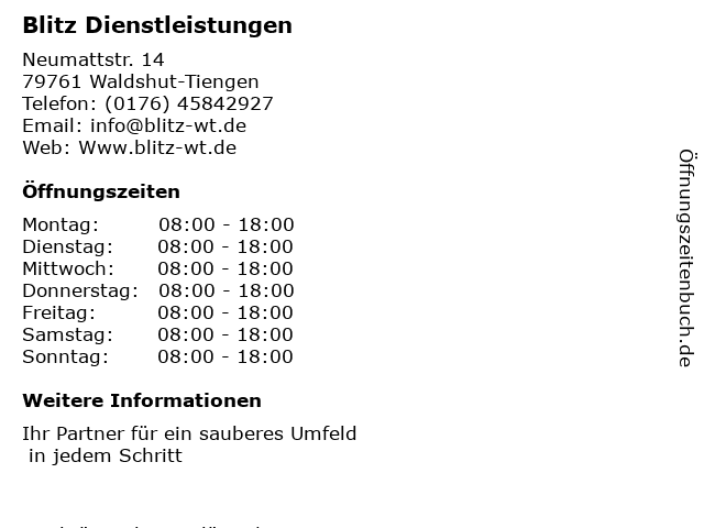 1 Gablenz, Thomas Dienstleistungen für das Haus (Entfernung: 0,66 km) Zeppelinstr 52, 79761 Waldshut-Tiengen 4 Compserv GmbH Computer Service EDV-Dienstleistungen (Entfernung: 10,89 km) Höhenringweg 3, 79771 Klettgau 5 Pizza Blitz Heimservice Häusern Inh. Shoukat Altwal (Entfernung: 15,67 km) Schluchseer Str. 3, 79837 Häusern 6 |