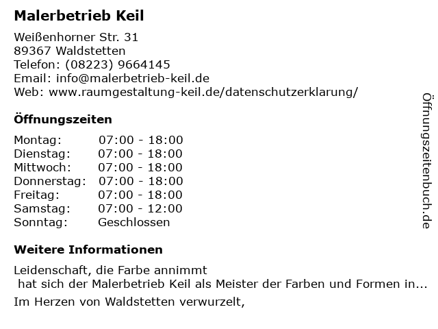 | Öffnungszeiten Malerbetrieb Keil in Waldstetten anzeigen | |
