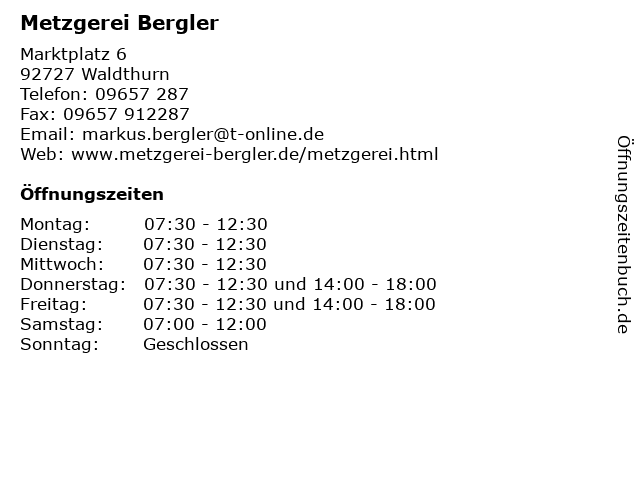 | Öffnungszeiten Metzgerei Bergler in Waldthurn anzeigen | |