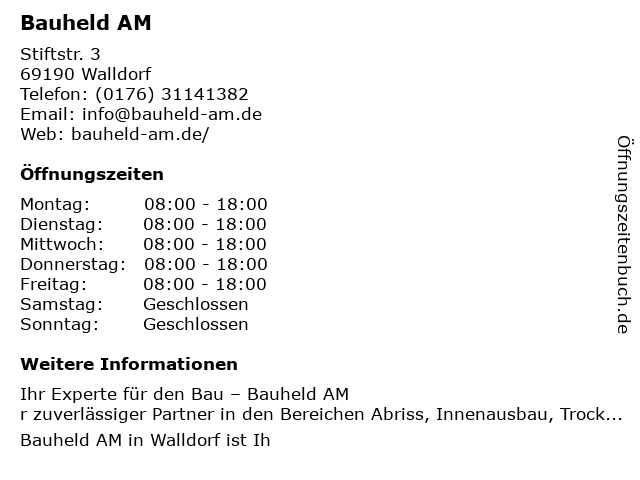 | Öffnungszeiten Bauheld AM in Walldorf anzeigen | |