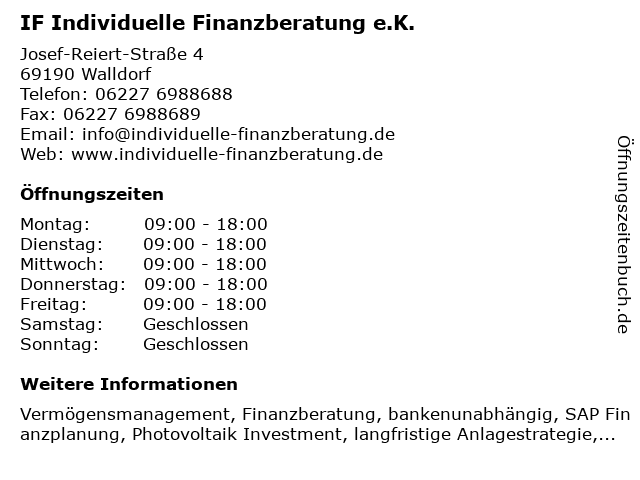 Branchen & Suchbegriffe zu IF Individuelle Finanzberatung e.K.:anlageberatung, e.k., finanzberatung, if, individuelle, photovoltaik investment, sap finanzplanung, vermögensmanagement |