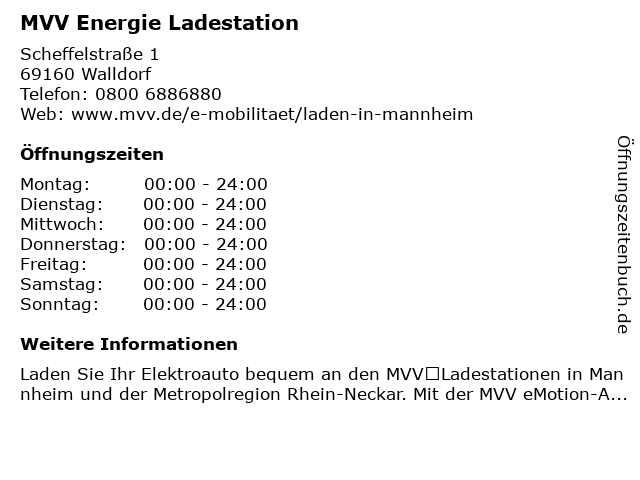 | Öffnungszeiten MVV Energie Ladestation in Walldorf anzeigen | |