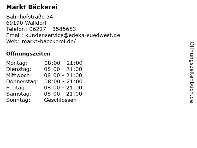 | Öffnungszeiten Markt Bäckerei in Walldorf anzeigen | |