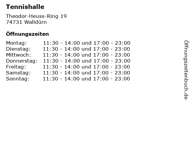 | Öffnungszeiten Tennishalle in Walldürn anzeigen | |