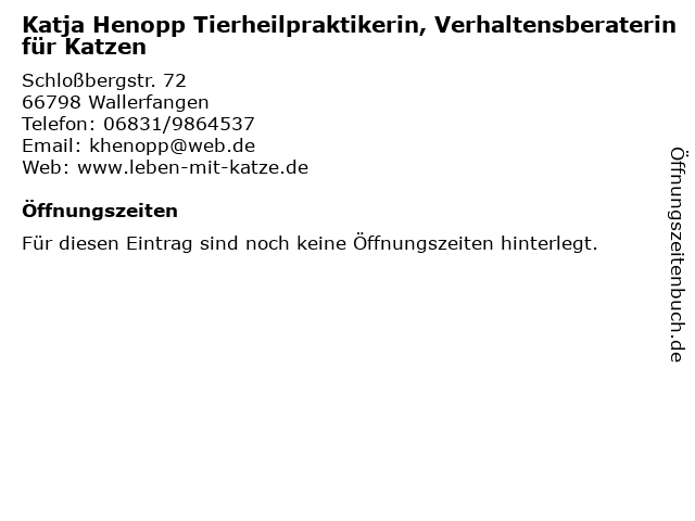| Katja Henopp Tierheilpraktikerin, Verhaltensberaterin für Katzen anrufen | |