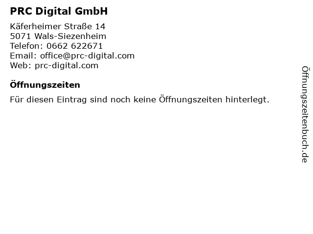 | Öffnungszeiten PRC Digital GmbH in Wals-Siezenheim anzeigen | |