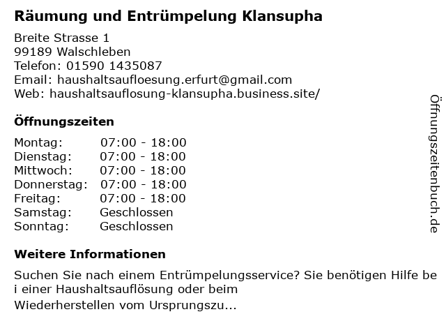 Branchen & Suchbegriffe zu Räumung und Entrümpelung Klansupha:entrümpelung, flohmarkt, klansupha, räumung, schrotthändler |