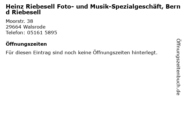 | Heinz Riebesell Foto- und Musik-Spezialgeschäft, Bernd Riebesell anrufen | |