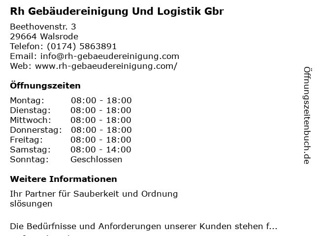 Branchen & Suchbegriffe zu Rh Gebäudereinigung Und Logistik Gbr:24-stunden-reinigungsservice, arztpraxisreinigung, bauendreinigung, baureinigung, bauzwischenreinigung, büroraumreinigung, fassadenreinigung, gbr, gebäudereinigung, logistik, praxisreinigung, praxisreinigungen, professionelle steinreinigung, rh, unterhaltsreinigung, wintergartenreinigung |