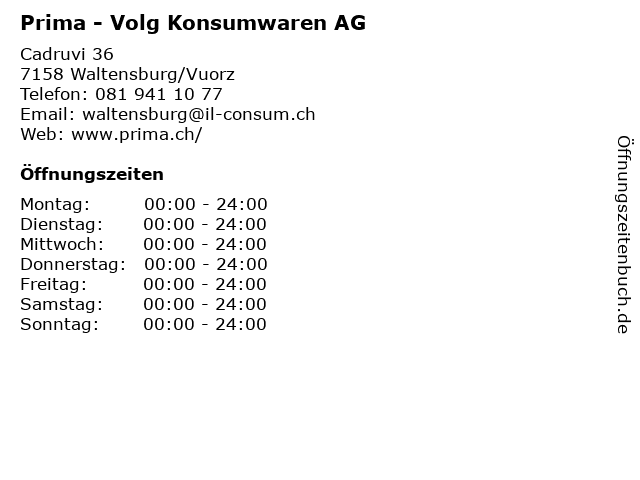 Öffnungszeiten Prima - Volg Konsumwaren AG