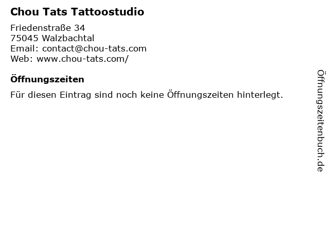 | Adresse Chou Tats Tattoostudio in Walzbachtal anzeigen |